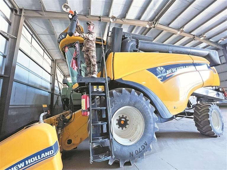 在青海省三江集团牧草良种繁殖场有限责任公司的机械设备库内,停放着各种新型先进农机设备。公司已经实现从种植到收割的全程机械化作业。本报记者 祁万强 摄