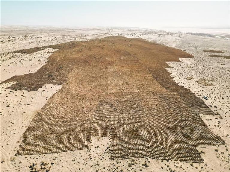 让昔日流动的黄沙穿上“铠甲”,中铁二十三局为青海戈壁荒漠浇筑“绿色坐标”。中铁二十三局集团有限公司农林生态分公司供图